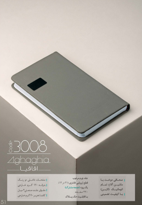 سررسید وزیری با جلد سخت روکش سلفون مدل بوران